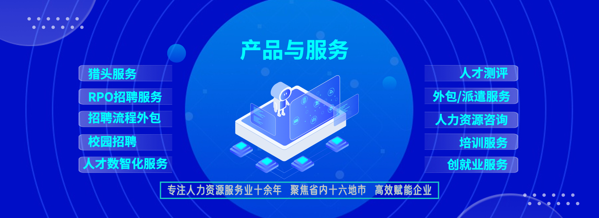 一站式服務(wù),降低企業(yè)管理成本 事務(wù)外包:人事事務(wù)外包,實習生招聘與管理外包 崗位外包:IT技術(shù)、財務(wù)/會計、行政文秘類和市場類崗位 項目外包:校園招聘外包、招聘流程外包、社交媒體運維外包、設(shè)計創(chuàng)意外包 業(yè)務(wù)流程外包:物業(yè)管理項目外包、零售快消行業(yè)的營銷服 務(wù)外包、倉儲物流業(yè)的倉儲與配送外包、O2O地推營銷外包、 呼叫中心外包等